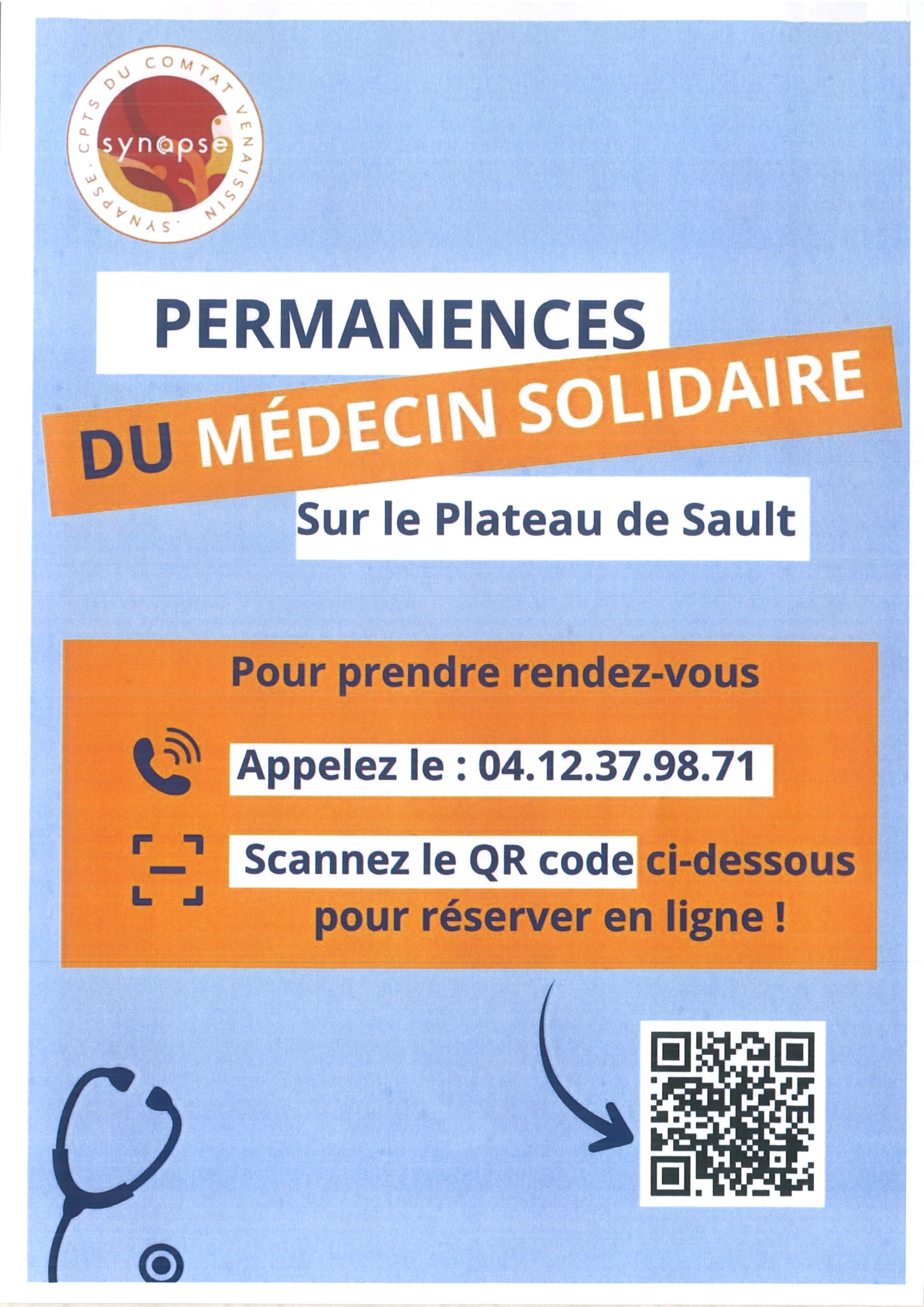 PERMANENCES DU MEDECIN SOLIDAIRE 13 novembre 2025 Ces permanences seront assurées à l’hôpital local de Sault