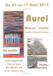 EXPOSITION MINERAL – VEGETAL 23 juillet 2015 Du 3 au 17 Août 2015 Une exposition d’Art Textile et de Photos se tiendra à Aurel – Salle Polyvalente. Tous les jours de 10 h 30 à 12 h et de 15 h 30 à 19 h 00 – Fermé le 15 Août