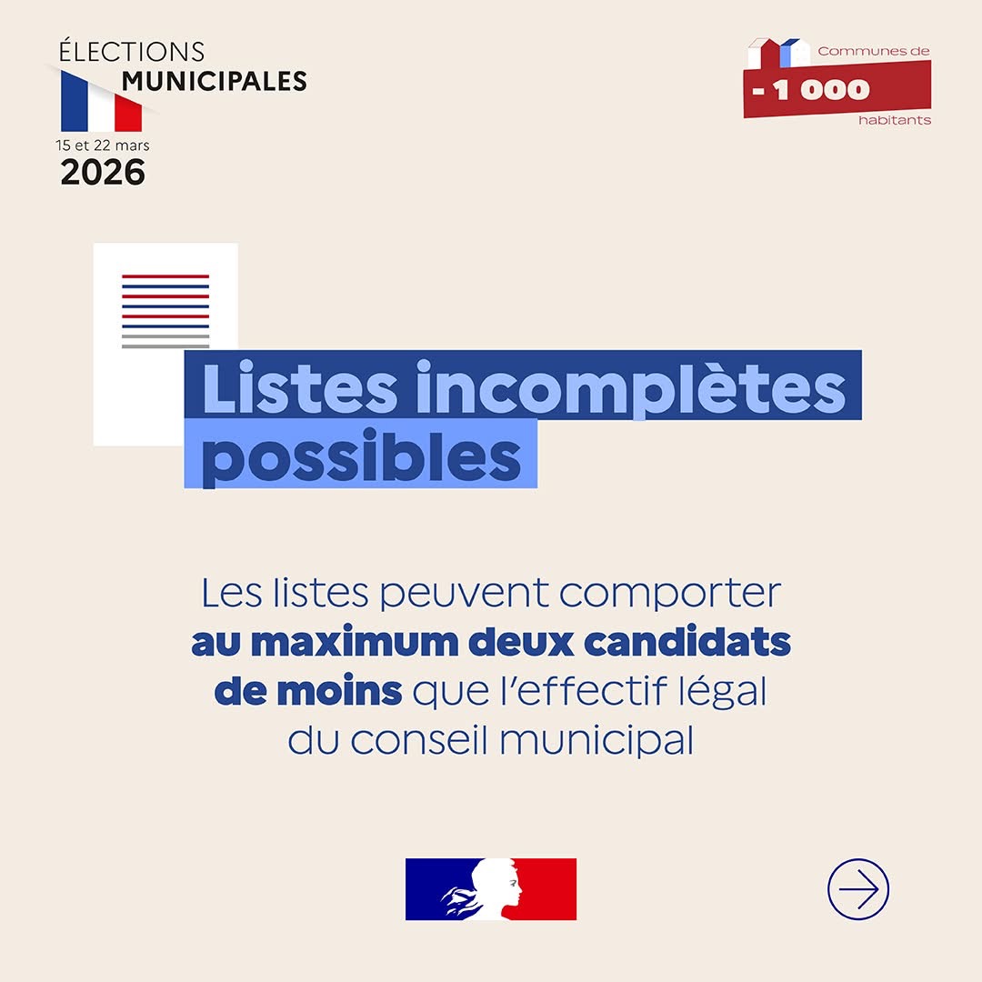 ✔️ Les listes peuvent comporter jusqu’à deux candidats de moins que le nombre légal de sièges au conseil municipal.