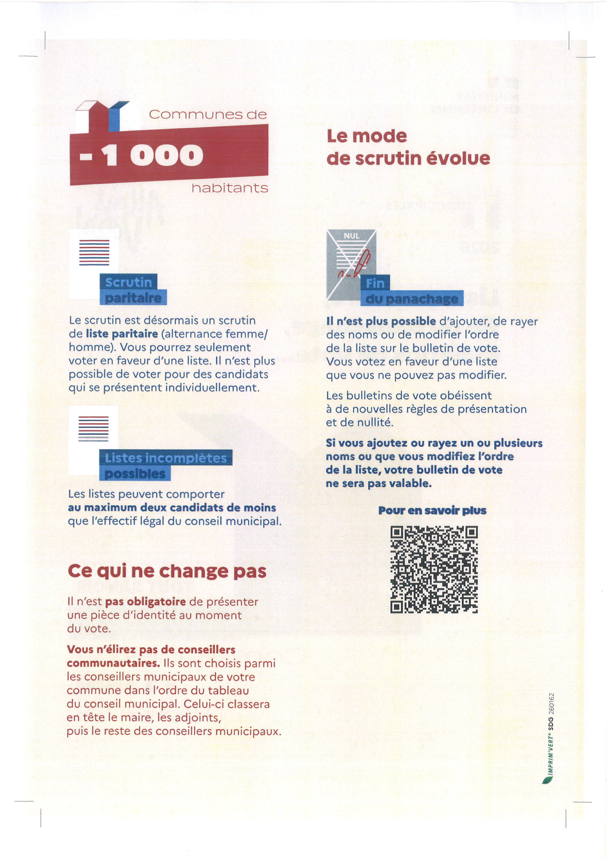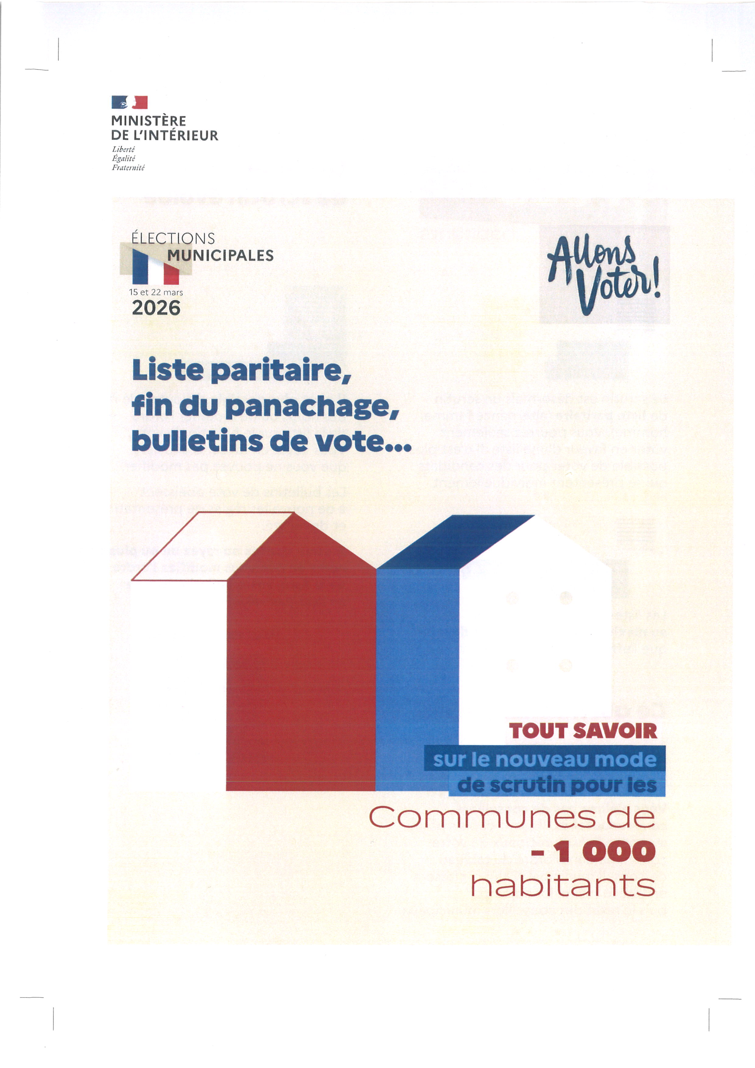 ELECTIONS MUNICIPALES DES 15 ET 22 MARS 2026 – Liste paritaire, fin du panachage
